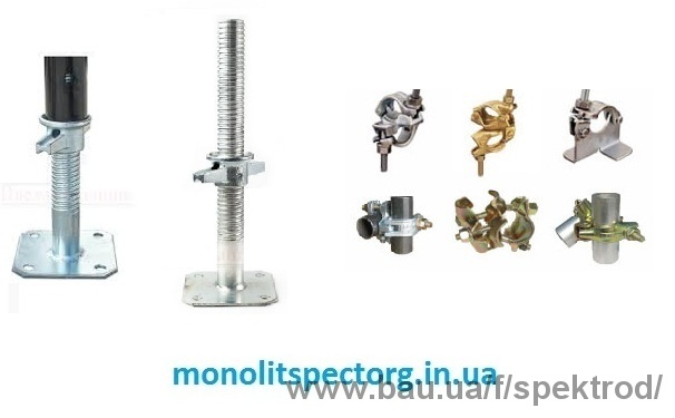 Комплектующие строительных лесов - регулируемые пятки и хомуты